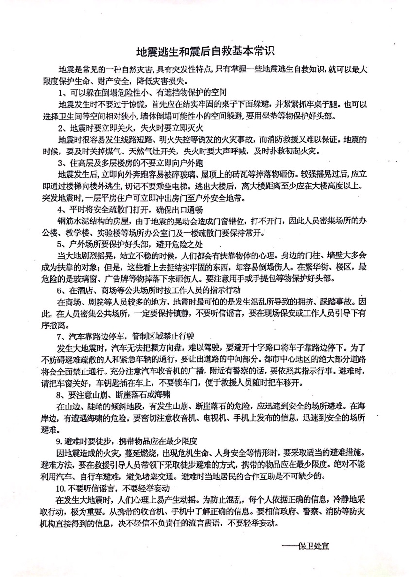 地震逃生和震后自救基本常识