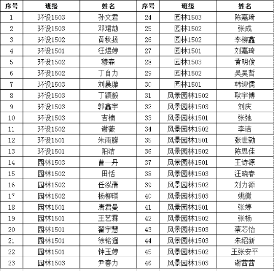 风景园林艺术学院推荐2019届优秀本科毕业生免试攻读硕士学位研究生面试名单及顺序