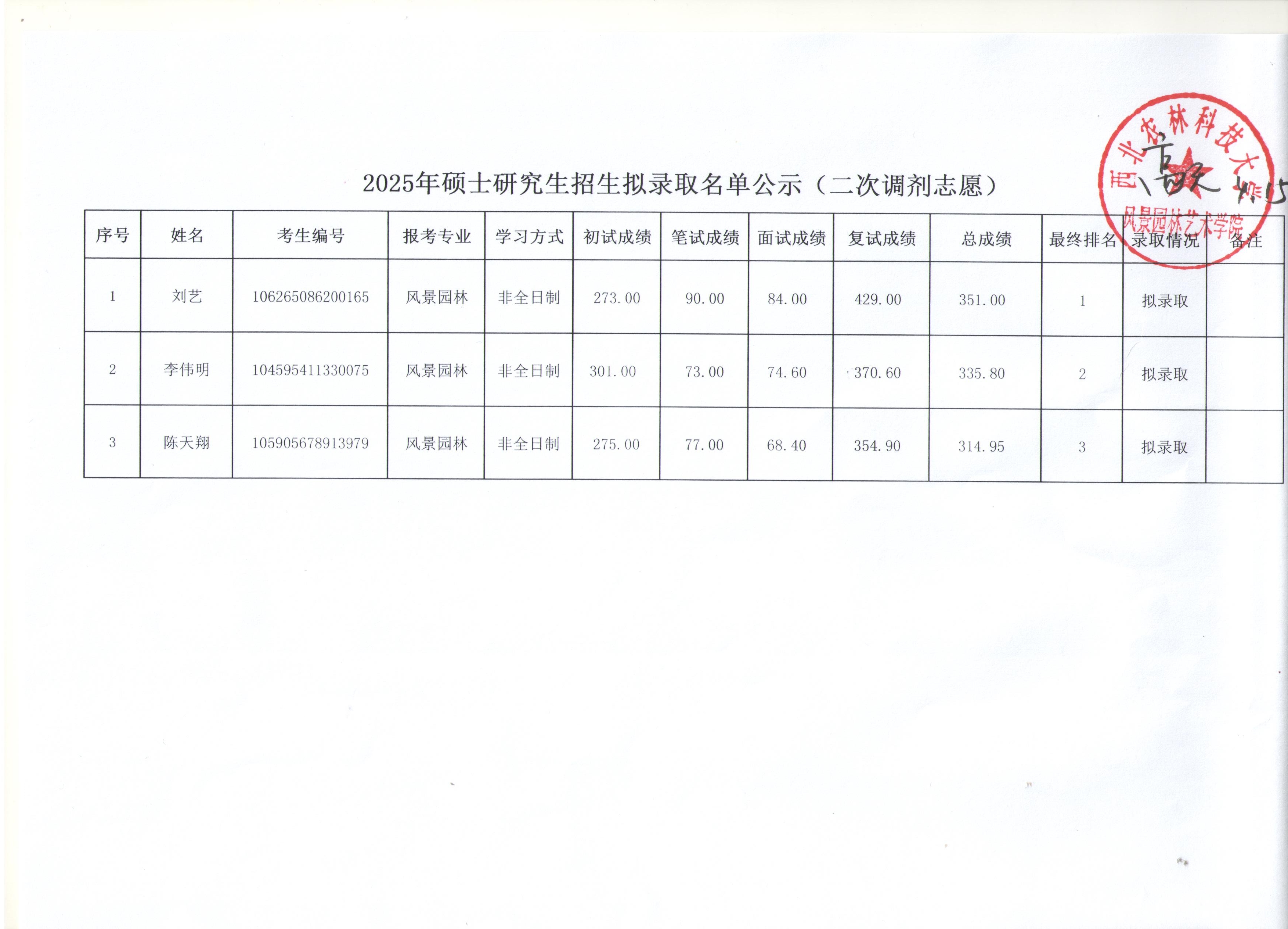 风景园林艺术学院2025年硕士研究生招生拟录取名单公示(三)