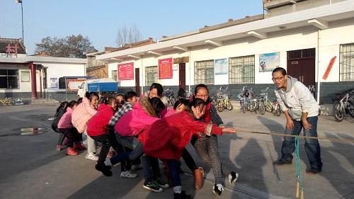下午2:20,志愿者抵达黎张沟村开始播撒爱心。在志愿者对留守儿童学业辅导一个半小时以后,志愿者带领孩子聚集到村里的活动场,大家一起进行了跳绳比赛、拔河比赛等轻松有趣的活动。活动中孩子们积极性很高,现场气氛不断高涨。其中拔河比赛最为激烈,男女生自发分成两队,一声令下,两队都卯足了劲,加油声此起彼伏,最终女生队以2:1获得了胜利。 此次活动获得了黎张沟村村委会的高度评价,增进了志愿者与孩子们的感情。