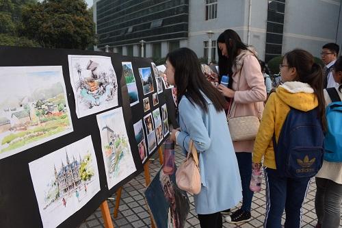此次优秀作品展,共展出我校不同院系的学生作品共计190余幅。涵盖平面设计、景观设计、插画设计、素描、水彩、油画、印章、陶艺、中国画等多种表现形式。所参展的作品内容丰富,形式多样,异彩纷呈,充分展现了我校当代大学生的风采与艺术素养,对校园人文艺术氛围的营造与公共艺术教育的提升起着积极的作用。
