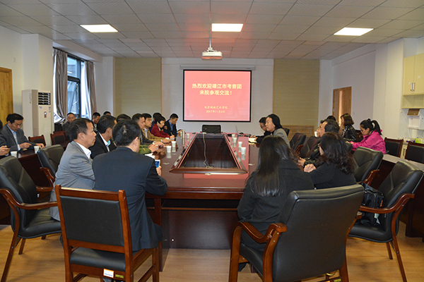 11月6日,江苏省靖江市考察团来院参观交流,双方就学生就业与科技推广进行了交流与座谈。
