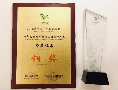 531日,由四川农业大学主办,携手西部知名高校——西北农林科技大学、贵州大学、西南大学、云南大学共同举办的2018第二届“岭南园林杯”西部高校园林景观规划设计大赛,在四川成都市圆满收官。我院研究生和本科生马超、聂帅、张云峰及窦磊四位同学共同组成参赛团队,其作品《短歌行·贵州省息烽县鹿窝镇山地旅游规划设计》从300余件参赛作品中脱颖而出,最终获得铜奖。