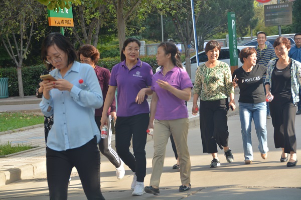 学院50余名教职工从学院出发,途经图书馆、栾树路、学校西大门、外专公寓、学院花卉基地等。一路上大家结伴而行,欣赏校园美景,交流工作经验,抒发生活感悟,谈笑风生、欢声笑语,度过了一个快乐美好的教师节。