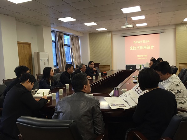 西安设计联合会副会长兼秘书长、丝绸之路创新设计产业联盟常务理事、长安大学教授习晋首先介绍了西安设计联合会成立的相关背景、主要目的、基本宗旨、发展目标、理事单位、近几年所开展的主要活动及所产生的社会影响力。陕西盛世唐人文化产业集团有限公司董事长、中国工业设计协会常务理事贾枝桦介绍了陕西盛世唐人文化产业集团有限公司的概况、涉足领域、标志性成果、发展方向、发展目标等,表达了希望与学院开展合作的愿望。西安设计联合会会长、丝绸之路创新设计产业联盟常务副理事长、西北工业大学教授陆长德介绍此行的背景与主要目的,并希望学院加盟西安设计联合会,积极推动设计类高校与企业间交流与合作,推动产学研融合,实现资源有机整合与共享,促进共同快速发展。