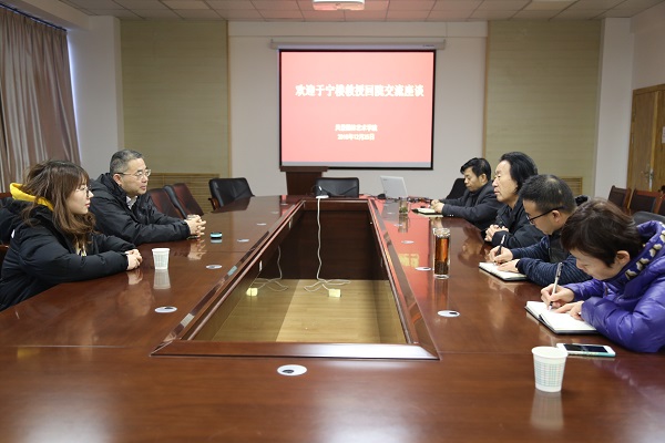 段渊古院长代表学院对于宁楼教授回学院交流表示欢迎,向于宁楼教授介绍了学院成立以来建设发展情况以及学院目前在师资队伍、专业设置、学科建设、人才培养、科学研究、社会服务等方面的现状。党委副书记王文良向于宁楼教授介绍了近几年学生就业情况,希望于宁楼教授结合规划设计单位对毕业生素质与能力需求,在人才培养课程体系构建方面给予学院宝贵建议。
