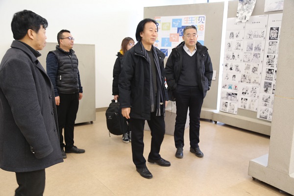 座谈会后,于宁楼教授在学院领导的陪同下,参观了学院的学生设计作品、专业画室和实验室。