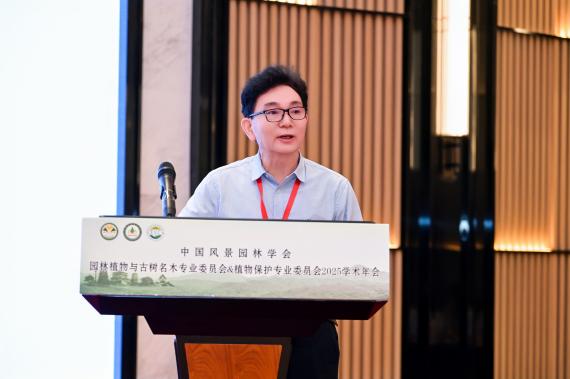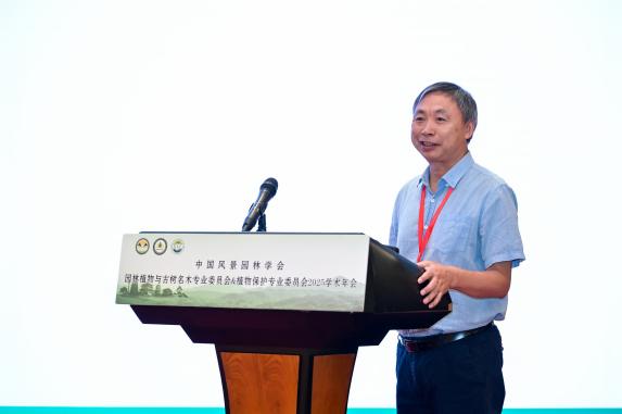本次学术年会以“园林植物与可持续发展”为主题,旨在加强园林植物、古树名木及植物保护相关领域的科学研究与实践应用,促进城市更新背景下城乡园林绿化的可持续发展。北京林业大学园林学院张启翔教授、中央民族大学生命与环境科学学院龙春林教授、华中农业大学植物科学技术学院黄应求教授与我校林学院赵忠教授进行主旨报告。主旨报告中,专家们聚焦园林植物与可持续发展这一核心,从多个维度分享了前沿研究成果与实践经验。